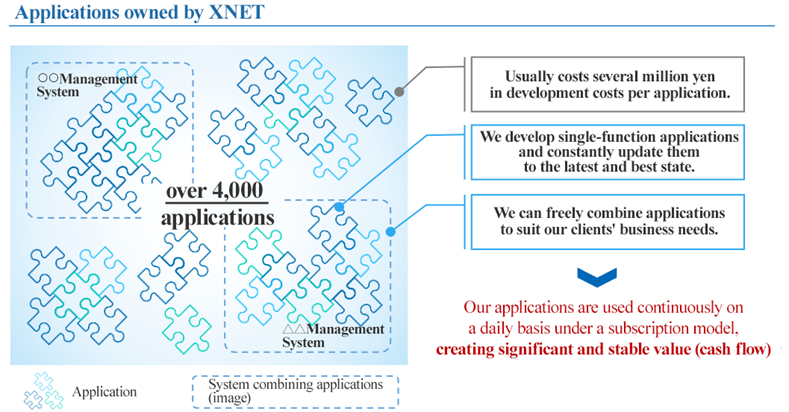 It has a single business segment, the XNET service business. The services can be categorized into “XNET Service” and “Equipment Sales.” However, “Equipment Sales” service is provided to clients who wish to install computers and other equipment while adopting “XNET Service” and accounts for about 0-1% of total sales.