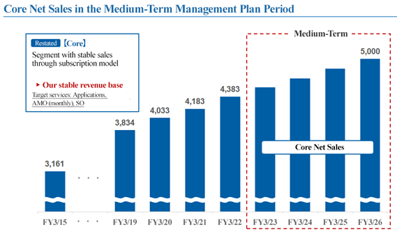 The company will further strengthen its “core” segment, which secures stable sales through a subscription model, and maintain high profitability.