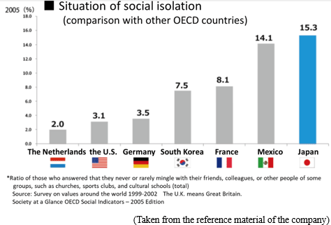 The company has engaged in business activities while recognizing that its social mission is to solve the declining birthrate, but it also considers that Japan needs to solve the problem of the isolation of elderly people.