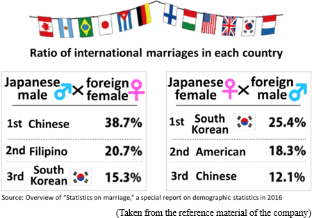 The ratio of international marriages to all marriages in Japan has been in the order of 5%, and so a certain level of needs can be expected.
