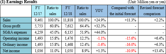 In the previous report, we stated "As the 2018 term is positioned as a period of investment for the company, we would like to pay attention to how much sales will grow in the fourth quarter." In regards to this, both sales and profit surpassed the revised estimates announced in Aug. 2018.