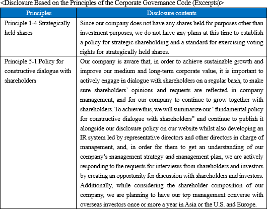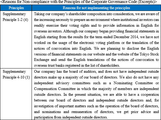 Our company believes effective business management requires building quality, stable relationships with our stakeholders that continue for the long term, something achievable by employing a management style that is dynamic and flexible, continually improving our business management monitoring, and ensuring sound business practices and transparency. To this end, our basic philosophy concerning corporate governance involves making a concerted effort to continually improve compliance awareness alongside efforts to enhance our organizational framework, with a strong focus on risk management.