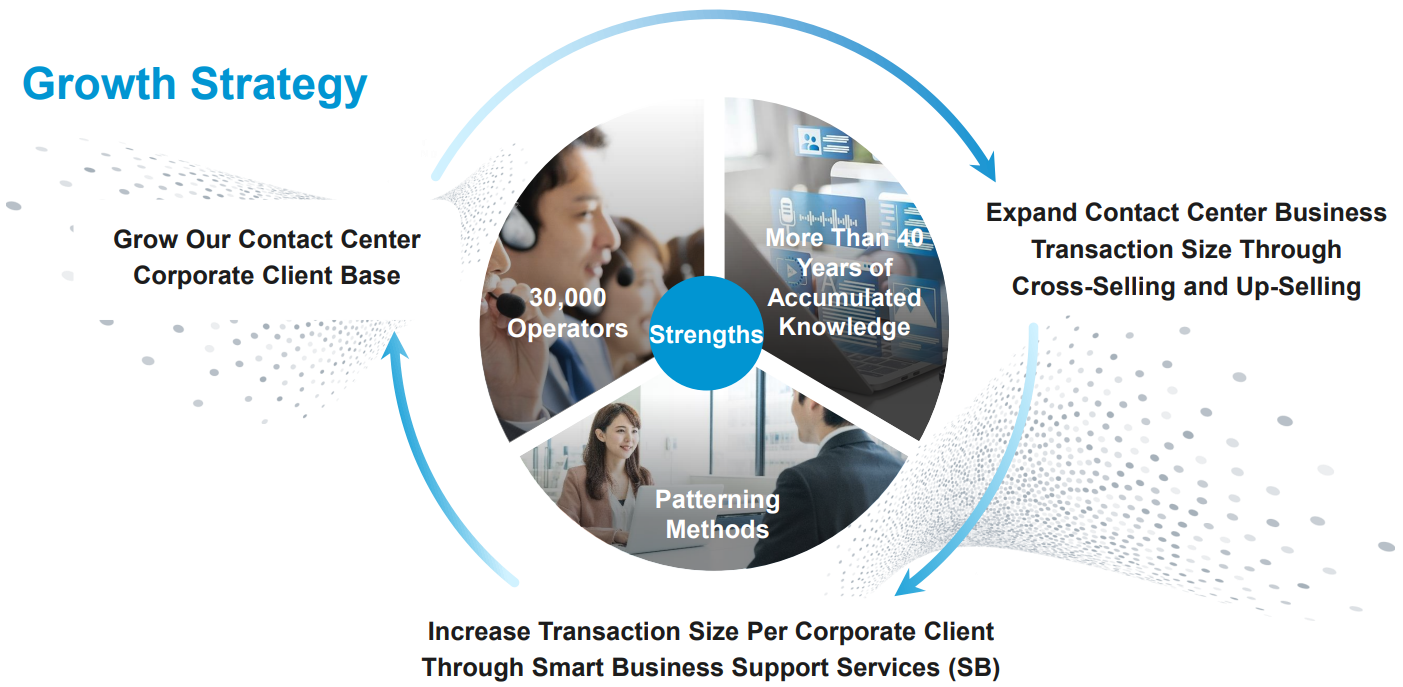 We would like to keep paying attention to their activities for pursuing growth by utilizing the alliances with external parties, including the ITOCHU Group, based on competitive advantages, such as 30,000 call center operators and an enormous volume of data on 500 million calls per year (Voice of Customer [VOC]).