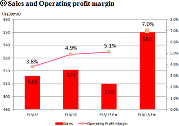 Moreover, steps have been taken for mid-term initiatives: Innovative Revolutionary Manufacturing, and Expansion in Non-automobile Engine Parts Business. The projected sales growth rate and profit growth rate for this term, which are 7.8% and 48.1%, respectively, imply that reaching sales of 55 billion yen and an operating income margin of 7.0% will not be a simple task, however, we would like to draw attention to the extent of their earnings for the current term. |