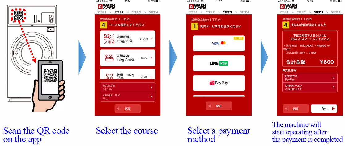 System for Cashless payment Cashless payment is possible, eliminating the need for coins.Currently compatible with 13 different payment services ![]() |