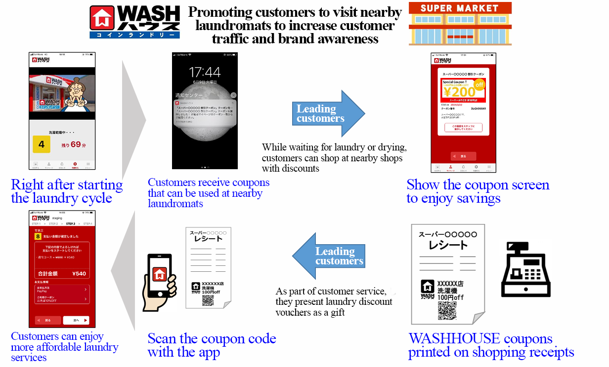 The initiative is expected to contribute to building a sustainable society by reducing greenhouse gas (GHG) emissions, for example, by generating electricity through solar power to meet the energy needs of the laundromats.