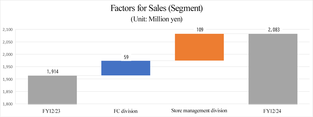 Sales increased 8.8% year on year to 2.083 billion yen.