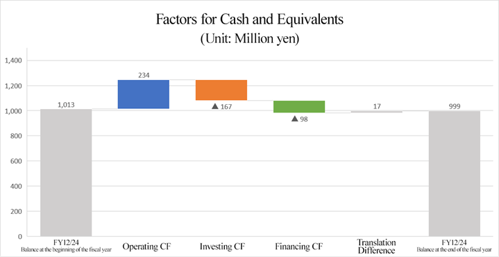 The total assets as of the end of the fiscal year ended December 2024 stood at 4,083 million yen, down 46 million yen from the end of the previous fiscal year. This is mainly because of a decrease in operating loans. Total liabilities decreased 102 million yen to 2,263 million yen, mainly due to a decrease in payable loans. Total net assets increased 56 million yen to 1,820 million yen, mainly due to net income.
