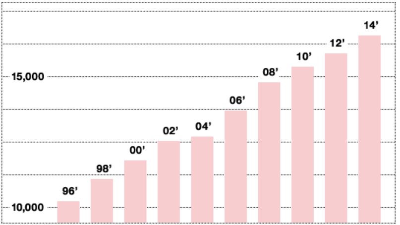 According to the “Survey on coin-operated laundromats” conducted by the Ministry of Health, Labour and Welfare, in fiscal year 2013, the number of self-service laundromats around Japan was 16,693, showing an increase from 10,228 in fiscal year 1996 at a CAGR (compound annual growth rate) of 2.9%. In the background of such growth, there are women’s needs for “the reduction in cleaning time” due to the increase of dual-earner households, measures against allergies, such as the allergy to pollen, decrease in the use of cleaning services due to the increase of low-priced high-quality clothes, and enhancement of awareness of cleanliness, and so on.