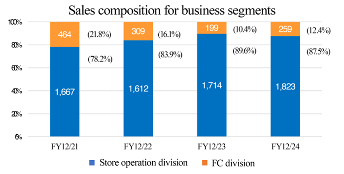 In the term ended Dec. 2022, the number of divisions will change from three (FC Division, Laundromat Management Division, and Directly Managed Division, etc.) to two ((1) FC Division (former FC Division) and (2) Laundromat Operation Division (Former Laundromat Management Division + former Directly Managed Division, etc.).