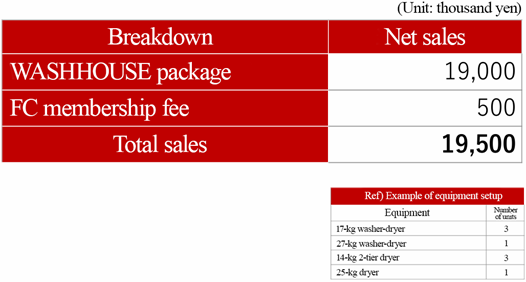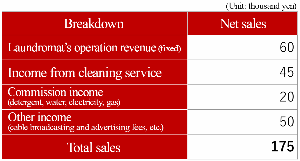 Sales are composed of the fees for laundromat management and system maintenance, sales of detergents, cleaning fees, advertising charges, etc.