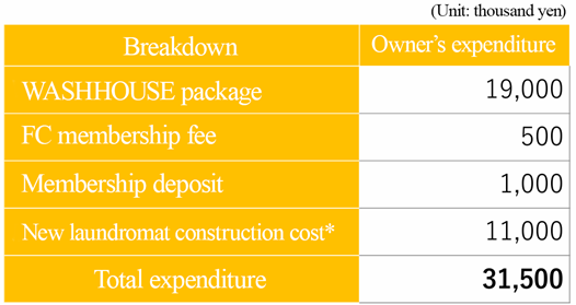 ![]() *Standard example, actual situation may vary among properties. | An example of owner’s expenditure at the time of laundromat opening