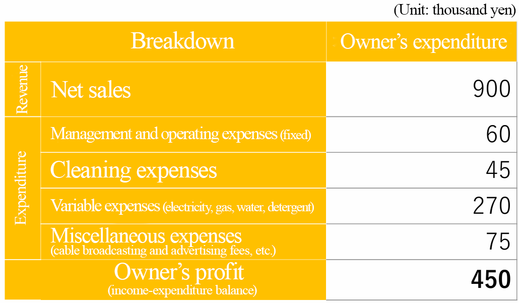 ![]() *Monthly revenue structure model. | Owner’s monthly income and expense model