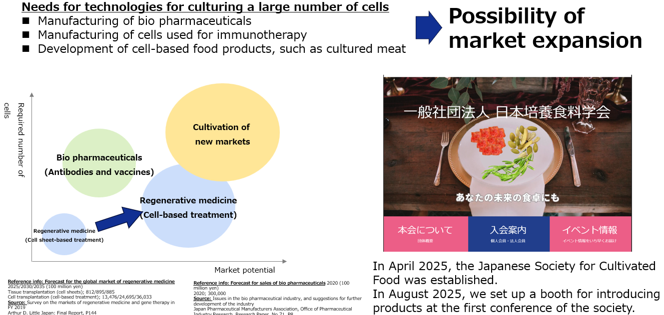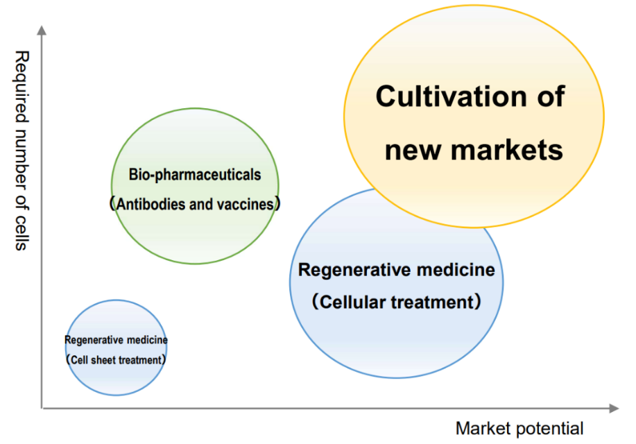 For this reason, the company is focusing not only on product development in the conventional regenerative medicine market, but also on product development to provide solutions that meet the needs of new markets, such as developing new cell culture equipment products and establishing new manufacturing facilities.