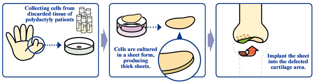 For developing cartilage cell sheets with allogeneic cells, the discarded tissue of patients with polydactyly who have six fingers, so it is necessary to solve ethical issues, but in December 2020, the company obtained approval for the provision of cartilage tissue collected from patients with polydactyly from Ethical Committee of National Center for Child Health and Development.