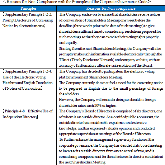 Fuji Corporation has submitted a Corporate Governance Report on December 8, 2015 after the Corporate Governance Code came into effect (in June 2015).