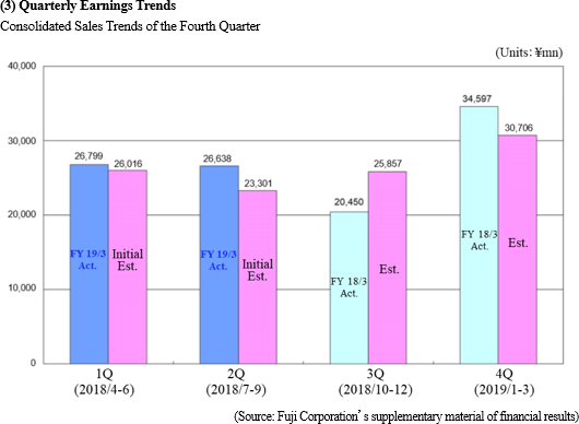During the first half of the fiscal year March 2019, value of orders exceeded Fuji Corporation's estimates but orders during the third quarter are expected to decline compared to the second quarter.