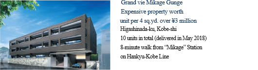 The company plans to enter into contracts for 670 units (up 6.0% from the previous term) for the full year, and concluded contracts for 209 units in the first half. Buildings to be delivered in the next term, including "WAKOHRE The Kobe Tor-Road" (Chuo-ku, Kobe-shi; a total of 192 units), will account for the majority of the contracts concluded. "WAKOHRE The Kobe Tor-Road" is in a distance of 8 minutes of walk from "Sannomiya" Station on JR Tokaido Main Line and 7 minutes of walk from "Kobe-Sannomiya" Station on Hankyu-Kobe Line. It is a large-scale property released in October 2017 and is scheduled to be delivered in August 2019.