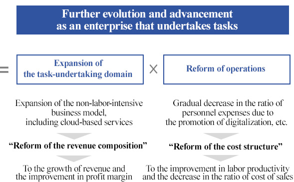 We, as a corporate group that enriches people’s lives through task-undertaking services, will continue investment that creates, acquires, and strengthens our intellectual property by implementing initiatives on sustainability as stated in the medium-term business plan (fiscal year June 2026 – fiscal year June 2028).