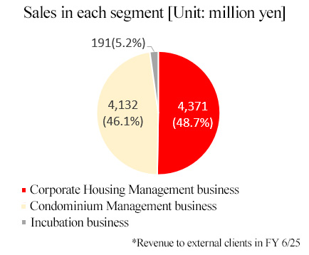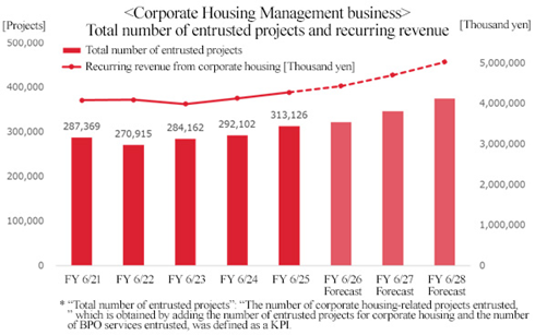 The number of transactions in which they undertook tasks related to corporate housing (the sum of the number of orders for corporate housing management and the number of business processes outsourced to them in FY 6/25) amounted to around 310,000, and the number of client companies (mainly large companies) that have signed a contract for outsourcing to them exceeded 300 in FY 6/25. In order to introduce real estate to client companies, they have developed a nationwide network of rental real estate firms exclusively for attending to corporations, which is called Japan Corporate Housing Net. The number of franchised or authorized agencies was over 300 as of the end of June 2025. In order to offer high-quality services, they have concluded a franchising contract with partner enterprises that were rigorously selected in accordance with their unique screening criteria.
