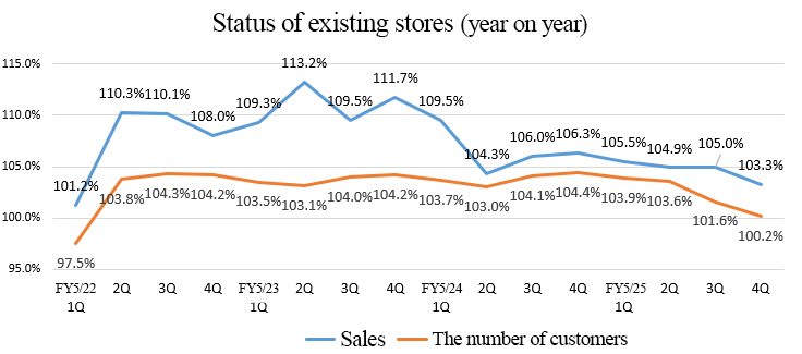 In order to increase directly managed stores, they established a joint venture company in April 2024, but in order to shift to a system for opening stores at an accelerated rate based on more flexible and swifter decision making, they terminated the joint venture contract in July 2025, and transferred their shares. From now on, they will make efforts to increase franchised stores.