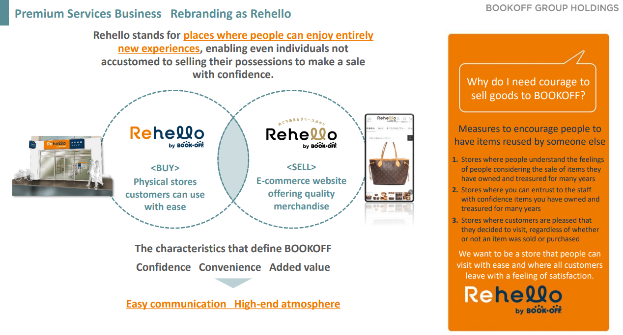 Accordingly, they are renaming “BOOKOFF Purchasing Consultation Desk” “Rehello” like the EC site. They plan unify the brand names into “Rehello” by the end of the fiscal year ending May 2026.