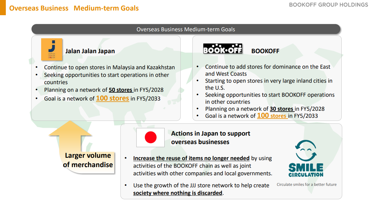 They aimed to achieve “sales of 130 billion yen and an ordinary income of 4.5 billion yen or over” in the fiscal year ending May 2028, but seeing the healthy performance of the BOOKOFF operations in Japan, they have upwardly revised the targets to “sales of 135 billion yen and an ordinary income of 5 billion yen.”