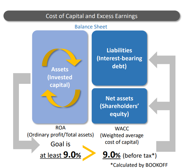 They recognize that the weighted average cost of capital for their treasury shares is around 9.0%, and aim to achieve an ROA of 9.0% or higher in the fiscal year ending May 2028.