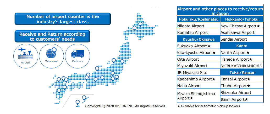 The company is proceeding with the strategy of making stores digitalized by (1) installing automatic delivery lockers (Smart Pickup), (2) adopting self-registration KIOSK terminals with multilingual support and payment settlement functions (Smart Entry), and (3) the QR code-based reception counter that features immediate customer identification (Smart Check), while expanding the number of manned counters in Japan. The company aims to evolve its stores to ones that can be used by Japanese tourists travelling abroad and foreign tourists visiting Japan, more conveniently, more comfortably, and with greater peace of mind, as well as strengthen its efforts toward the increase of routers on lease (number of routers delivered) and increase of optional services (such as insurance services and accessories).
