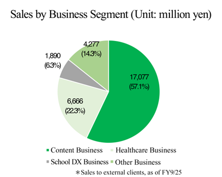 - While continuing to secure solid profit levels in the Content Business for the fiscal year ending September 2026, contributions from the School DX Business are expected. Profit growth is expected in the Healthcare Business as well, with the effects of the upfront investment made in the fiscal year ending September 2025 likely to be steadily reflected in earnings.