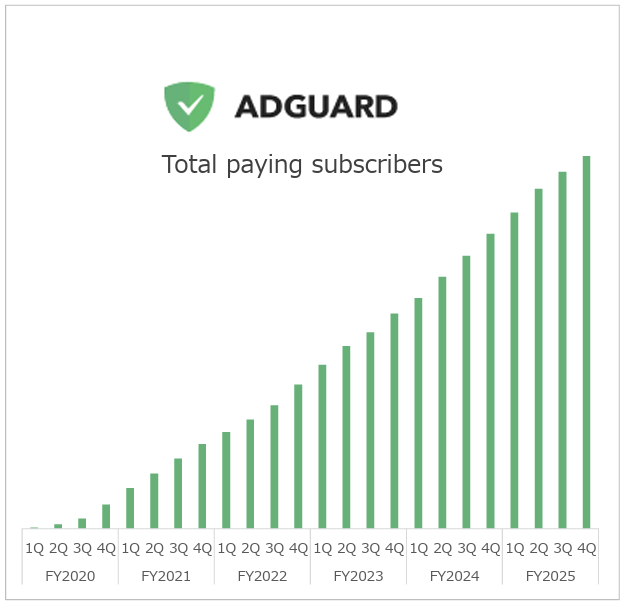 The number of paying subscribers as of the end of September 2025 was 1.16 million. The number of paying subscribers is steadily increasing, and further expansion is expected because the application is highly recognized for enabling one account to be used on multiple devices.