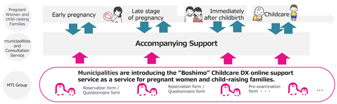 As the government promotes the digitization of information concerning the health of mothers and children, the company will further expand the range of municipalities using the mother and child health handbook app “Boshimo.” Furthermore, they will actively conduct marketing to promote sales of childcare DX services mainly among municipalities that have adopted the app. Finally, they will forge ahead with the “Boshimo” platform strategy by achieving digital cooperation between municipalities, hospitals and citizens, and work on developing it into one of core businesses in the business segment, which can contribute to profit in the medium to long term.
