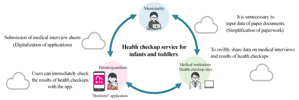 In order to use the health data, the medical institutions and municipalities accumulated individually more effectively, the business is working on building a new system to link the data on the multiple different systems in each institution through the use of the group's healthcare services.