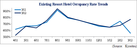 Amidst the industry wide trend for hotels to reduce value addition and focus upon only sleeping accommodations, Kyoritsu' s has sought to differentiate its services and facilities by providing "large hot spring type bathing facilities" and "good tasting breakfast menus." During fiscal year March 2012, this differentiation strategy was successful in the difficult task of capturing pleasure travelers at its business hotels, and matched the needs of business travelers to create favorable demand for their business hotels (Some facilities benefitted from disaster relief related demand). The three new facilities of "Natural Hot Spring Fugaku no Yu, Dormy Inn Mishima," "Natural Hot Spring Shirasagi no Yu Dormy Inn Himeji," and "Natural Hot Spring Sodeminato Dormy Inn PREMIUM Hakata Canal City Front" were opened during the term.