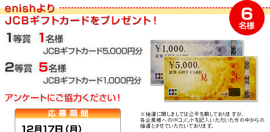 | 当選発表 | 当選者の発表は商品の発送をもって代えさせていただきます。 |