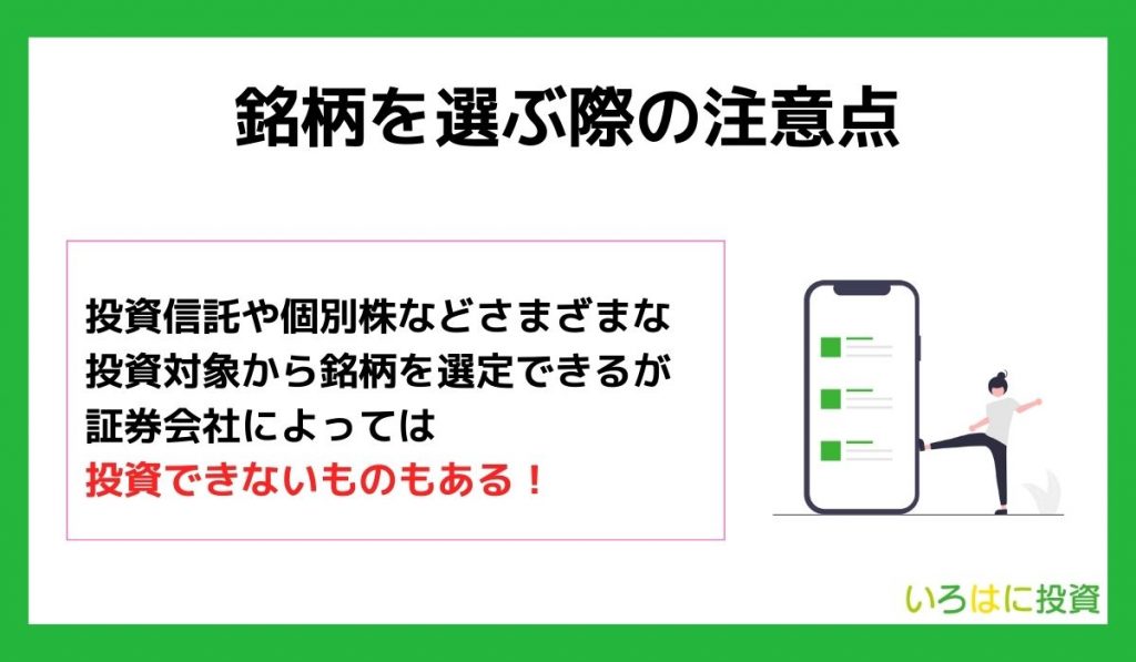 ここで注意してほしいのは、どの証券会社を選ぶかによって投資できる銘柄が変わってくることです。