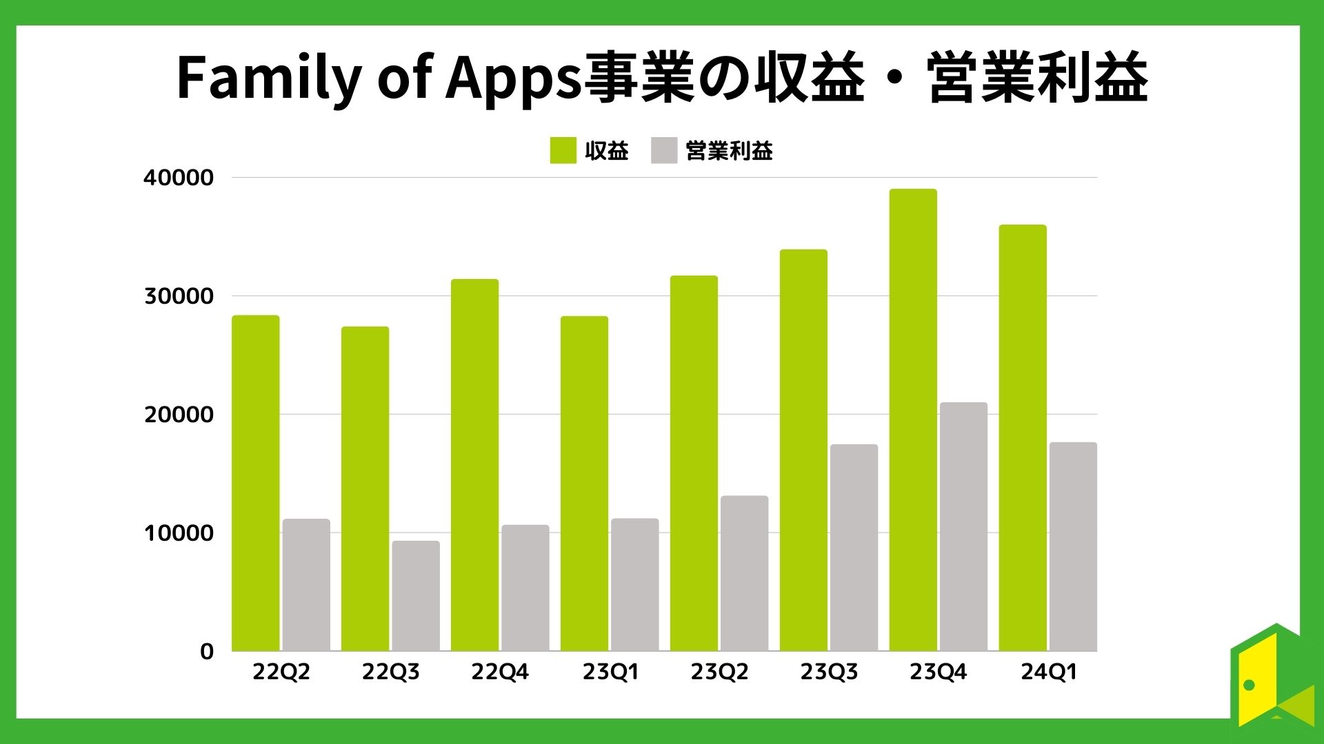 Facebook、 Instagram、Messenger、WhatsAppを中心としたFamily of Appsが好調で、前年同期比で約60億ドルの増収となりました。