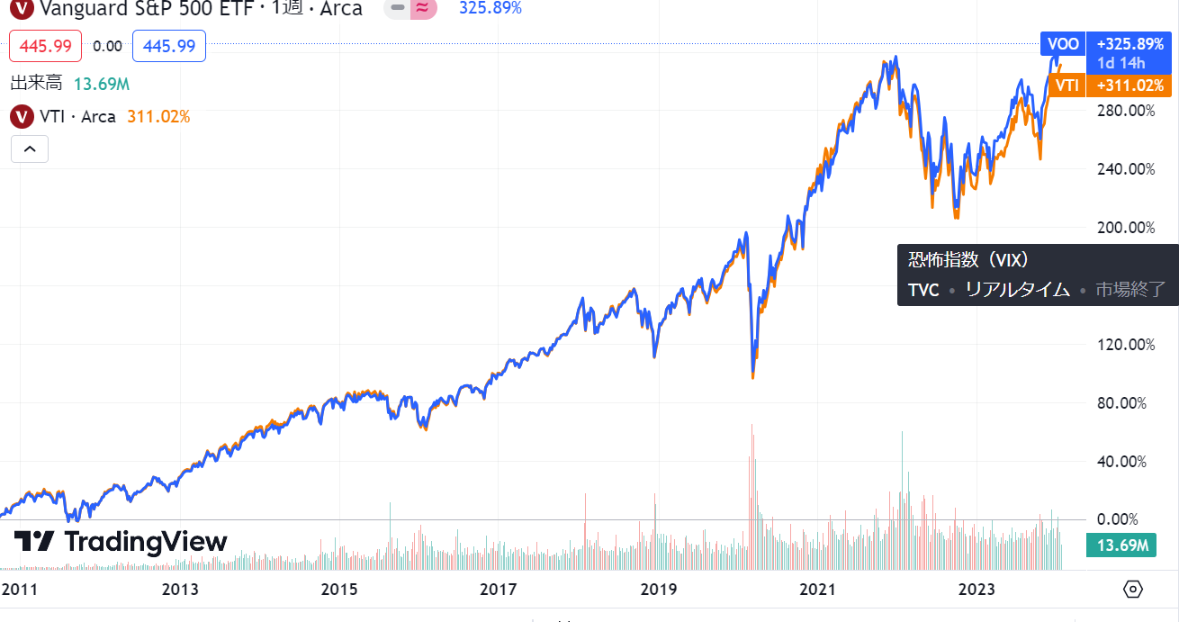 以下では、VOOとVTIを5項目に分けて比較していきます。